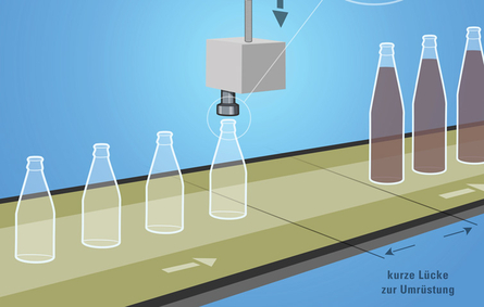 Bei der Formatverstellung in Abfüllanlagen kommt es nicht nur auf optimale Funktionalität und Verfügbarkeit der mechatronischen Antriebe an. So individuell wie die abgefüllten Getränke – so individuell sind auch die Behälter. Nicht nur die verschiedenen Größen und Formen bringen Ihre besonderen Anforderungen mit – auch die Werkstoffe können die Handhabung in der Maschine entscheidend verändern. Wir liefern Produkte, die auf die Anforderungen Ihrer Applikation zugeschnitten sind. In diesem Beispiel geht es um Glasflaschen, die vor der Abfüllung zugeführt und inspiziert werden müssen.